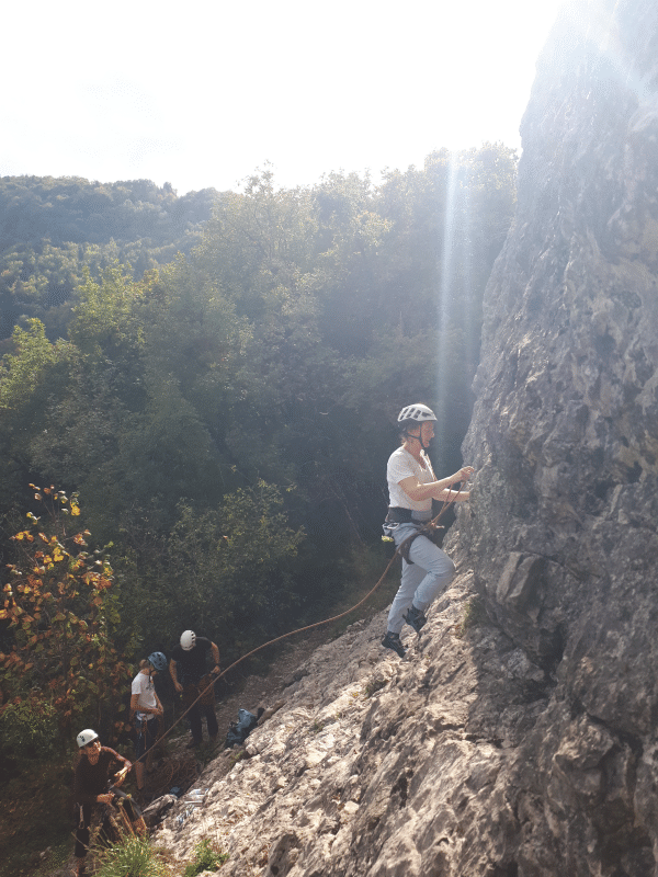la silhouette de Claire se détache dans la voie Dromaludaire (6a)