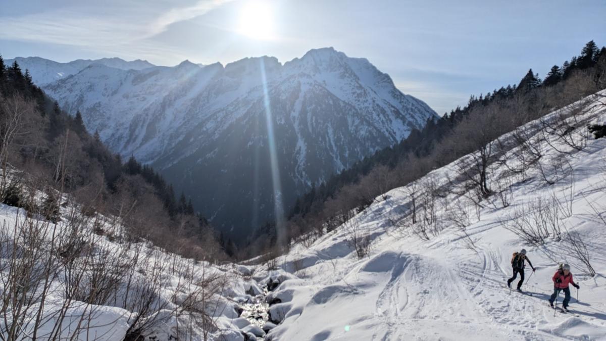 La forêt n'est pas trop compliquée. Skis aux pieds à la montée sauf pour la traversée de 2 ruisseaux. A la descente, un peu de marche. Bonne neige transfo de haut en bas. Nous avons rencontré Pierre au sommet avec qui nous avons partagé le picnic. Seulement nos 2 voitures sur le parking. Le traditionnel pot à Allemond termine agréablement une belle journée.