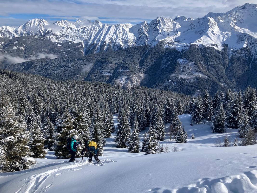 Sur la crête, un peu avant le Lac du Séchident, nous sommes descendus plein Ouest dans les pentes raides. Puis direction le Chalet de Pierre Roubet avant de "repeauter" pour remonter au plateau du Crêt du Poulet. Finalement, vu l'horaire, nous sommes descendus par la piste de ski pour retrouver les voitures !