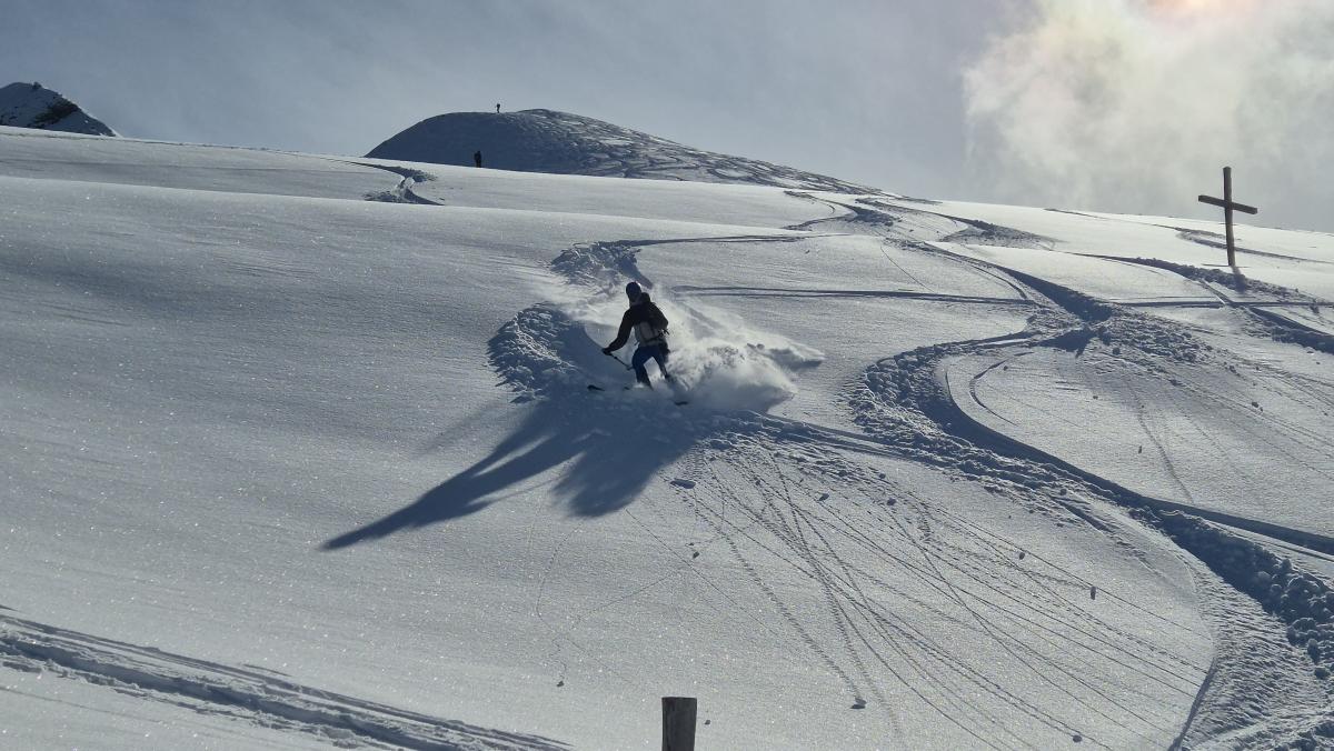 Belle sortie dans ma grande classique d'Orionde. A la montée on doit quitter le sentier pour éviter qq arbres en travers. On ne voit personne dans la montée W avant de tomber sur beaucoup plus de mode arrivant de pont de la Betta. on se régale dans la descente N puis sur la croupe W jusqu'à la forêt. plus bas, la neige est plus difficile à skier, mais ell est présente en quantité.