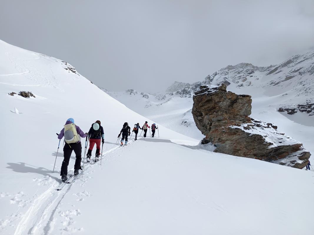 Suite à la soirée d'échanges sur la montagne au féminin, une action possible pour inciter les femmes à prendre plus souvent le lead était la proposition de sorties en non mixité choisie. Ce rassemblement hivernal était l'occasion de mettre en application et donc de proposer, parmi les multiples sorties organisées, une sortie réservée aux femmes.