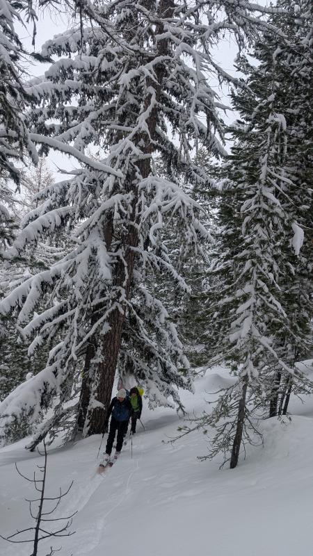La descente dans une poudreuse épaisse et froide nous a tous donné le sourire et la forêt jusqu'à longe Clôte fut un régal!