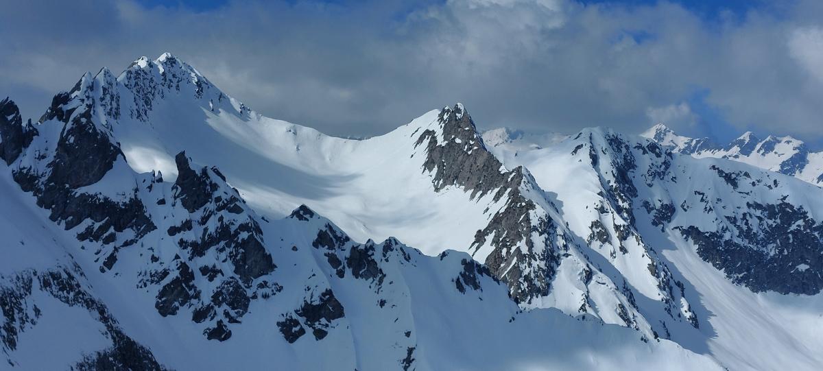 Soleil et bon regel. Neige transfo. Nombreuses reptations sur tout le flan est des Rochers Motas.