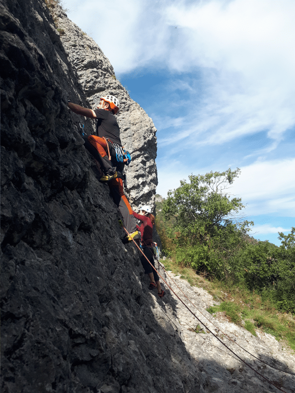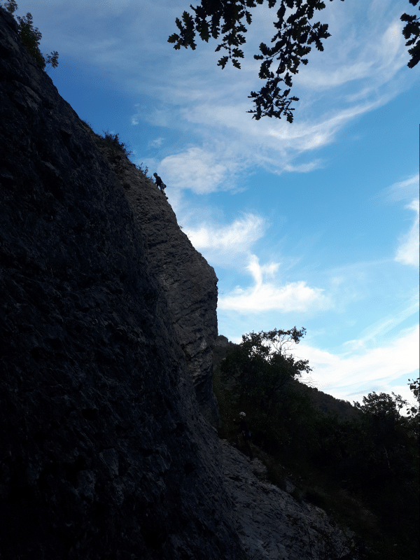la silhouette de Claire se détache dans la voie Dromaludaire (6a)