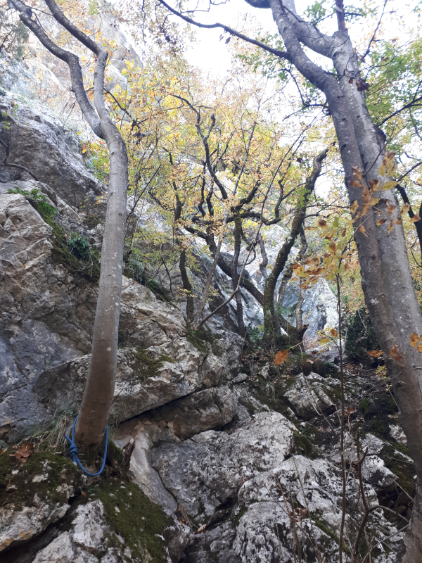 via corda d'initiation de Comboire, départ du couloir d'accès