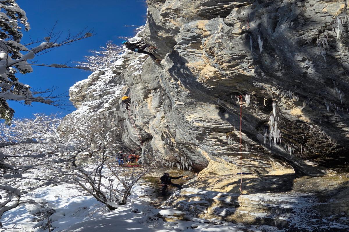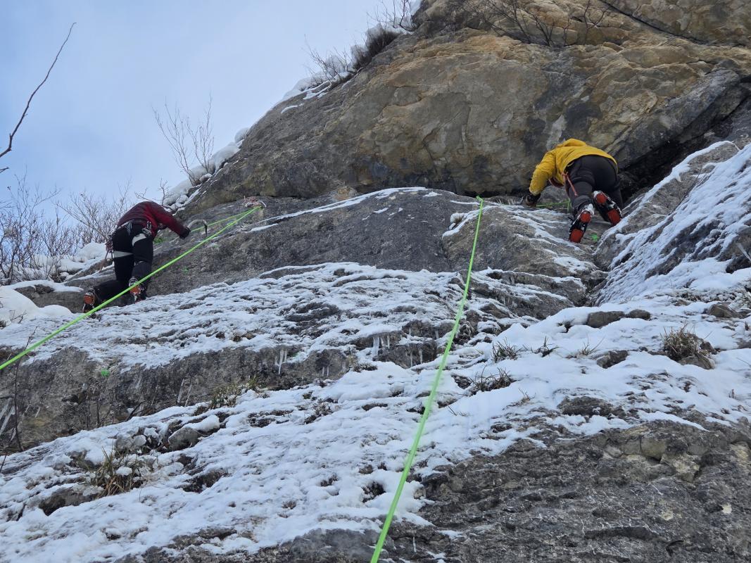 Parfaites : des conditions hivernales idéales pour cette journée de découverte du drytooling, avec le soleil en prime l’après-midi.