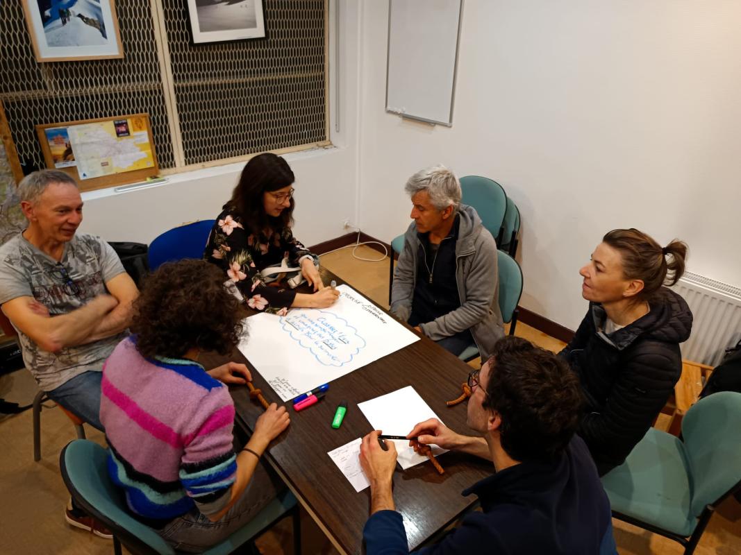 Pour préparer cette soirée, une petite équipe s’est mobilisée : Emmanuelle, Stéphane, Christine et Céline. Leur mission : imaginer le format de la rencontre et trouver une facilitatrice extérieure pour animer les échanges. C’est finalement Marine qui a accepté ce rôle. Après plusieurs échanges et quelques rencontres pour affiner les ateliers et le déroulé de la soirée, tout était prêt.