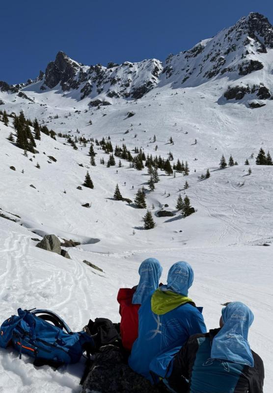 Départ matinal pour une sortie rondement menée, une première descente jusqu’au lac du Vénétier excellente donc on remonte pour un deuxième tour, un peu plus mou bien sûr mais toujours du bon ski, ça chauffe bien sur ce versant sud-est ! Ensuite petite remontée pour venir chercher les belles pentes beaucoup moins tracées sous le Jas des Lièvres, pique-nique au refuge et la bière au Convivial.