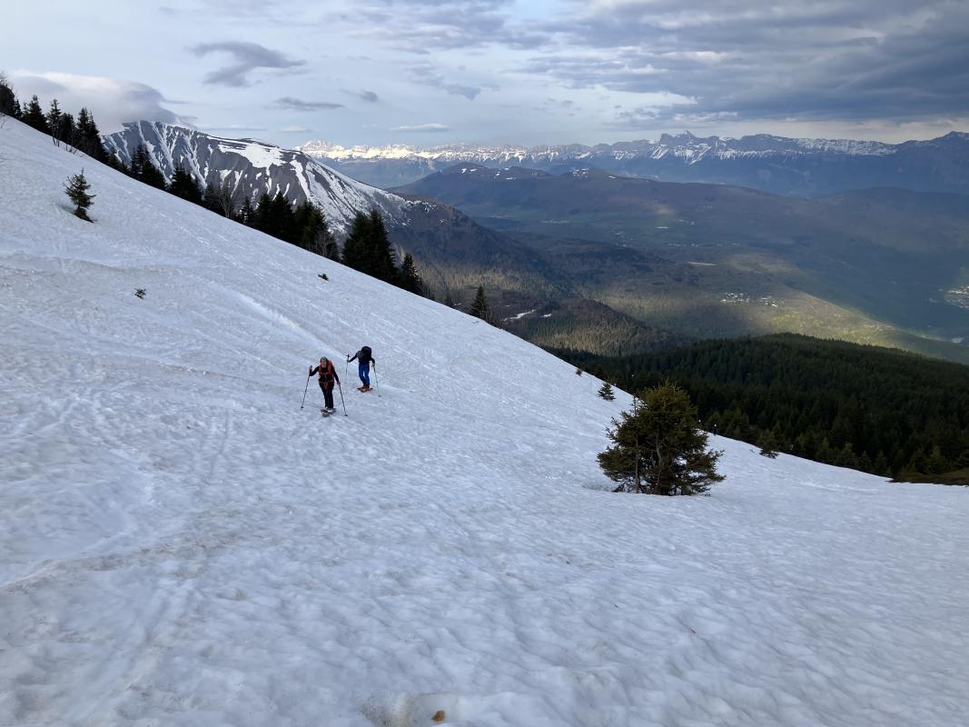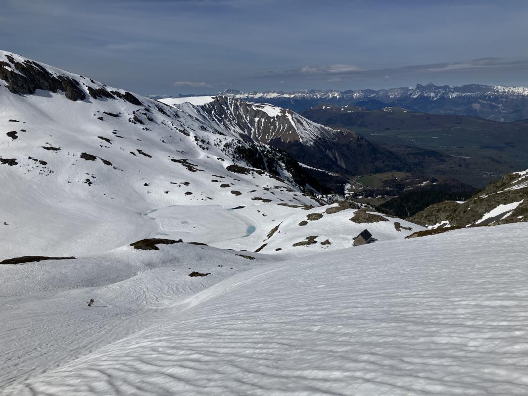 Nous optons pour une descente sur la cabane du Brouffier et en dessous pour tester ces fixations en mode descente… même galère…