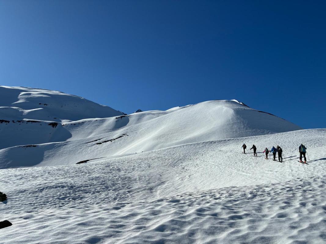 Tous les ingrédients étaient réunis pour une bonne sortie de printemps : un portage limité, une montée efficace aux Aiguillettes avec les couteaux, une première descente versant Est sur du velours, un pique-nique panoramique au sommet des Aiguillettes, une deuxième descente versant NW jusqu’à 2000 et enfin après une dernière montée sur Cote Mouton une belle descente versant W sous Cote Belle sur une neige revenue à point. Une bonne journée en montagne 🤩