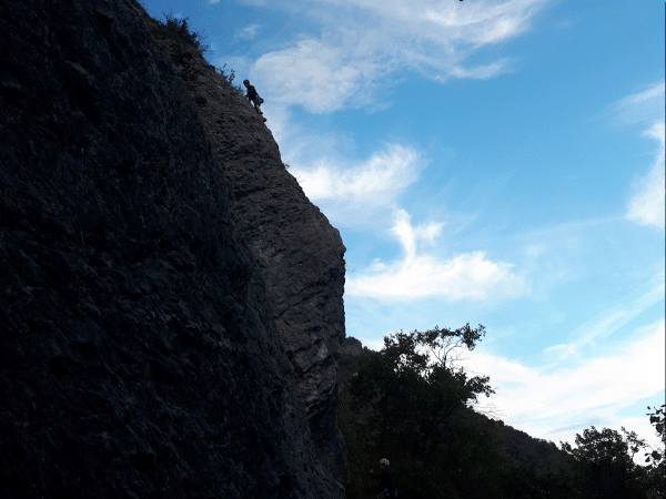 la silhouette de Claire se détache dans la voie Dromaludaire (6a)