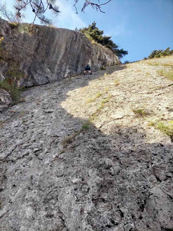 Escalade en dalle facile avec des points espacés. Voies d'initiation qui sollicite un peu les jumeaux. :-)