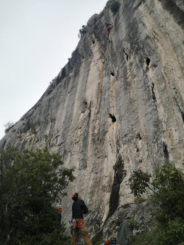 La journée est clôturée par deux enchaînements de 7A et une descente à la frontale (pas pour tout le monde) dans la garrigue.