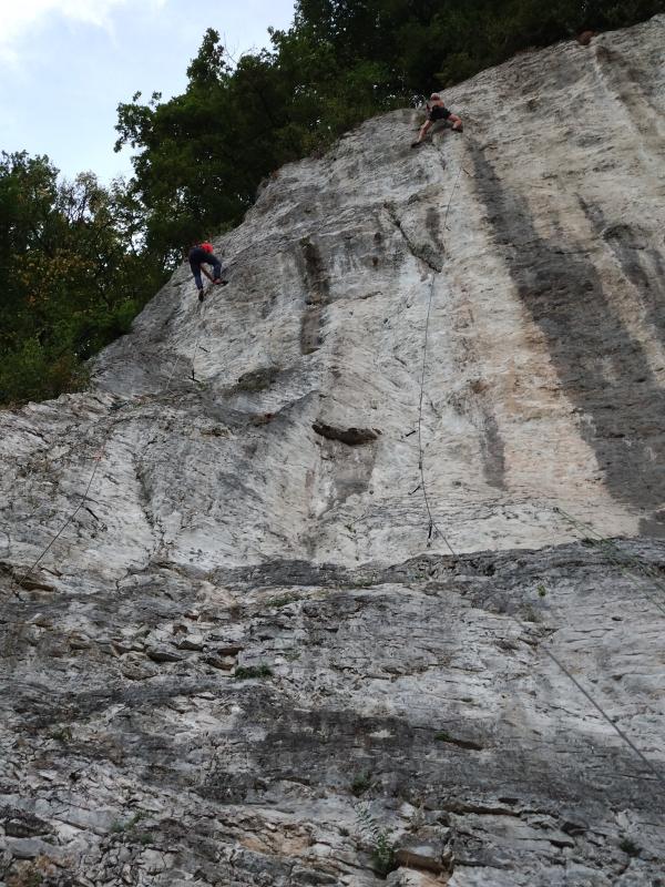 Échauffement sur les voies les plus faciles puis travail dans des voies plus dures tout en évitant le milieu du secteur avec un nid de frelons. Tests aussi sur les 2ndes longueurs permettant de belles envolées tout en haut (22 dégaines et jusqu'à 40m).