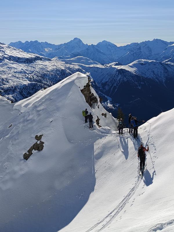 Montée d'un bon rythme, départ 9h15, arrivée 12h à la brèche. Descente à 12h30, on profite d'une neige froide dans les contrepentes du gros Treu, avant de traverser vers les pentes transformées vers 2100. Partie raide négociée sur l'épaule forestière avant de rejoindre la route et les dernières pentes pas si désagréables à skier.