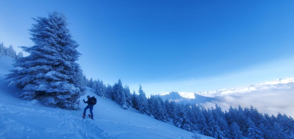 La montée se déroule avec des "wouaaaaah c'est trop beau" toutes les 3 minutes, à la vue des sapins enneigés dans la forêt... merci aux premiers passés qui ont fait la trace, il y avait vraiment beaucoup de poudre.