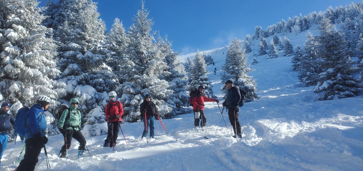 Le problème : trouver la poudreuse non tracée... au Gemsa on ne se décourage pas aussi facilement, on s'écarte pour aller la chercher :) Et sur les conseils de Joël, on essaie de passer entre les branches des arbres qui cachent des accès de glisse pour notre plus grand plaisir.