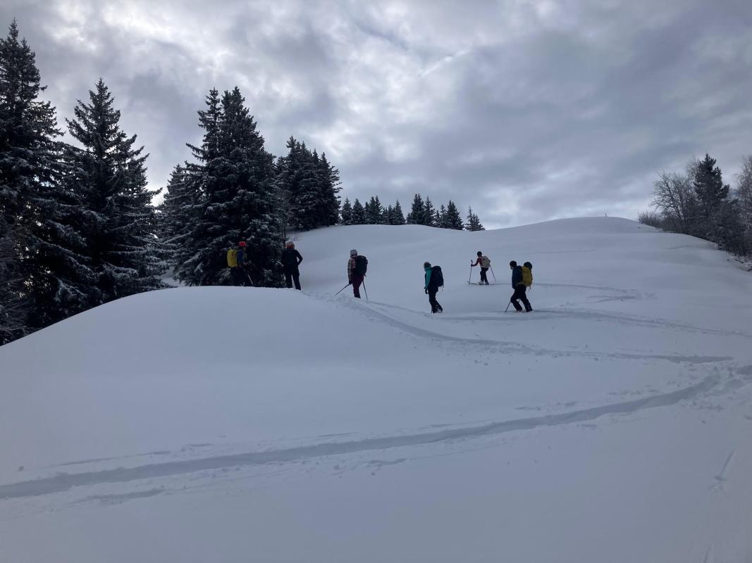 Petite exercice recherche DVA en milieu d'après midi sur le plateau du Crêt du poulet avant de redescendre.