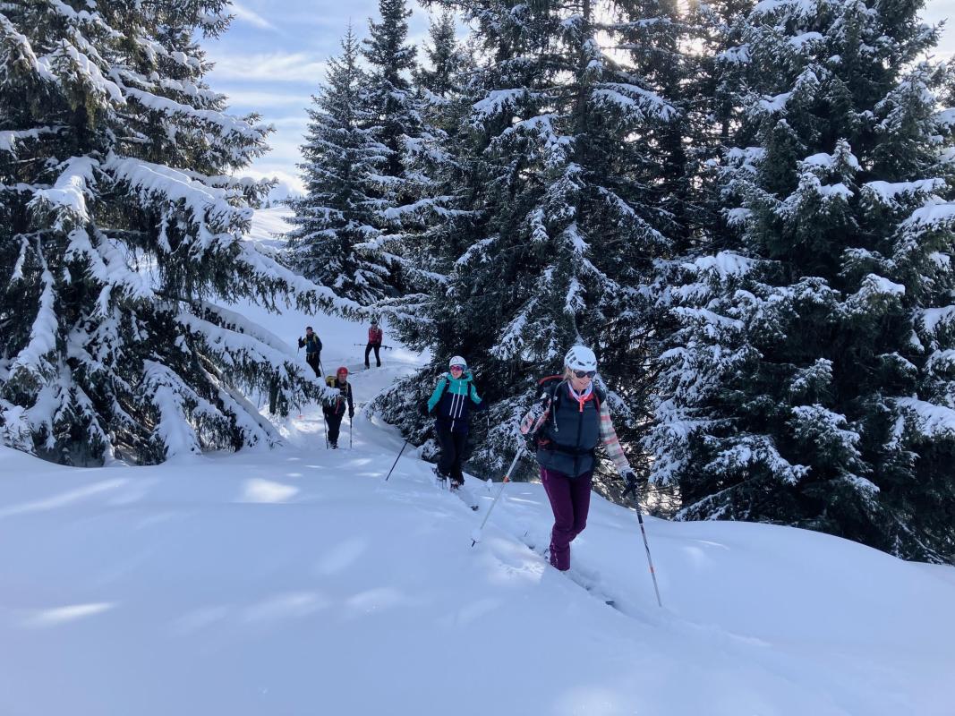 Sur la crête, un peu avant le Lac du Séchident, nous sommes descendus plein Ouest dans les pentes raides. Puis direction le Chalet de Pierre Roubet avant de "repeauter" pour remonter au plateau du Crêt du Poulet. Finalement, vu l'horaire, nous sommes descendus par la piste de ski pour retrouver les voitures !