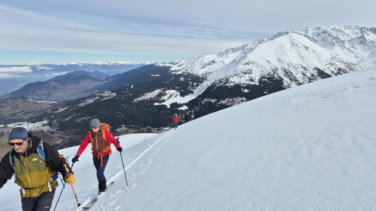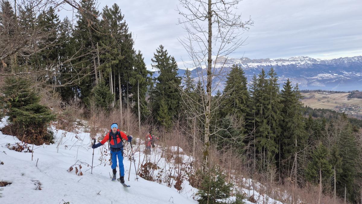Belle sortie dans ma grande classique d'Orionde. A la montée on doit quitter le sentier pour éviter qq arbres en travers. On ne voit personne dans la montée W avant de tomber sur beaucoup plus de mode arrivant de pont de la Betta. on se régale dans la descente N puis sur la croupe W jusqu'à la forêt. plus bas, la neige est plus difficile à skier, mais ell est présente en quantité.