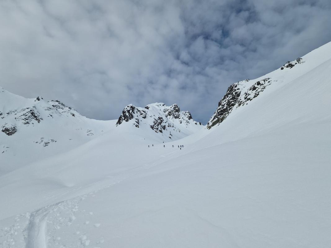 Avec deux désistements la veille pour cause de santé, dont un cadre, la sortie a été sauvée par Romain qui a généreusement accepté de la co-encadrer. Grace à l'heure de départ matinale et au groupe qui s'est montré très efficace et homogène, on a réussi à respecter les délais avec une arrivée au col autour de 12h30. On a croisé plusieurs groupes qui sont partis des Roches, en se partageant la trace en fonction du rythme de chaque groupe. La descente a été bien agréable au dessus de 2000m, mais on a fini en mode "chacun ski comme il peut" sur le chemin d'été, en étant néanmoins contents qu'on a pu garder nos skis jusqu'au village. Malgré les comptes rendus des jours passés concernant la fermeture des bars, ce jour là on a réussi à trouver un ouvert dans le village pour profiter d'une boisson autour d'une table et faire notre debriefing de la journée.