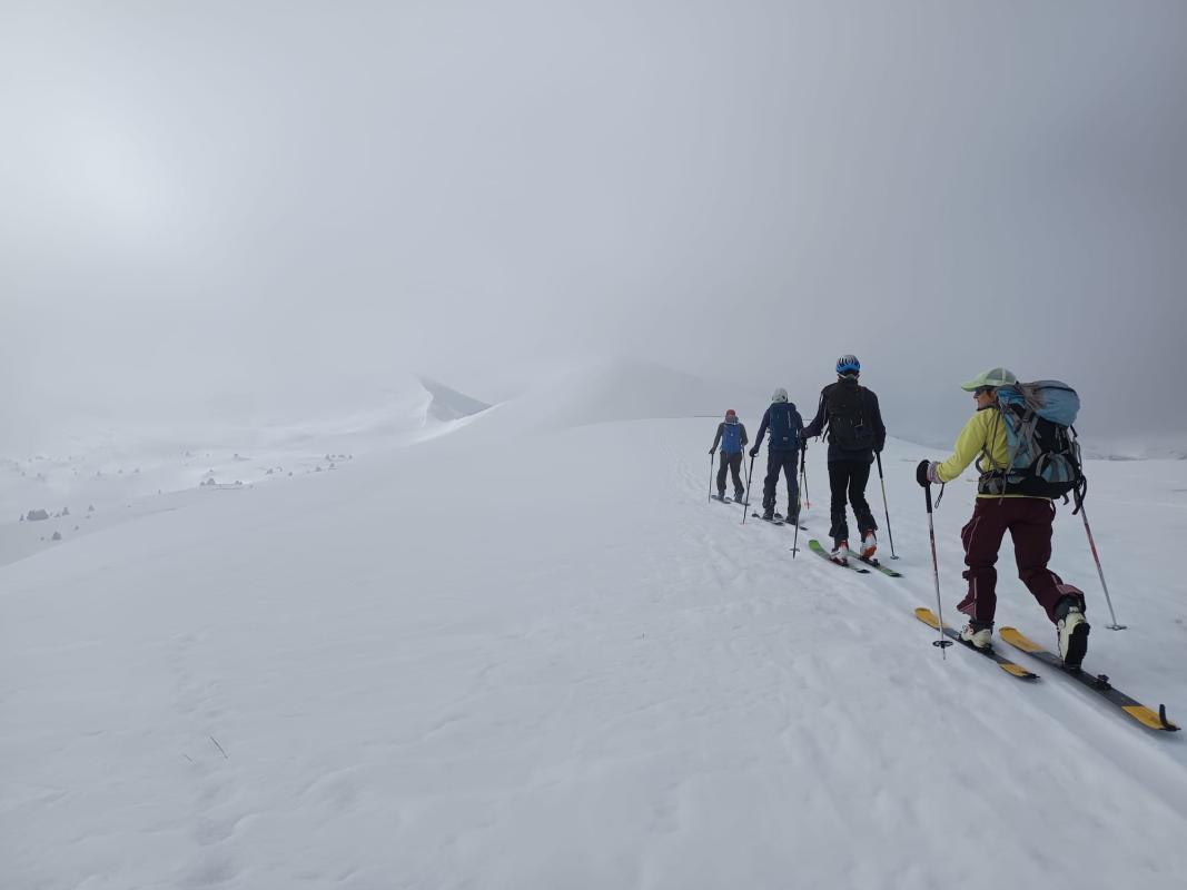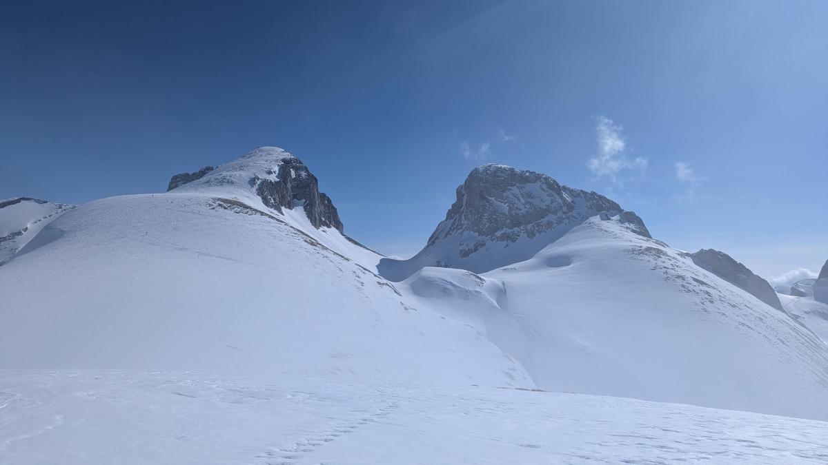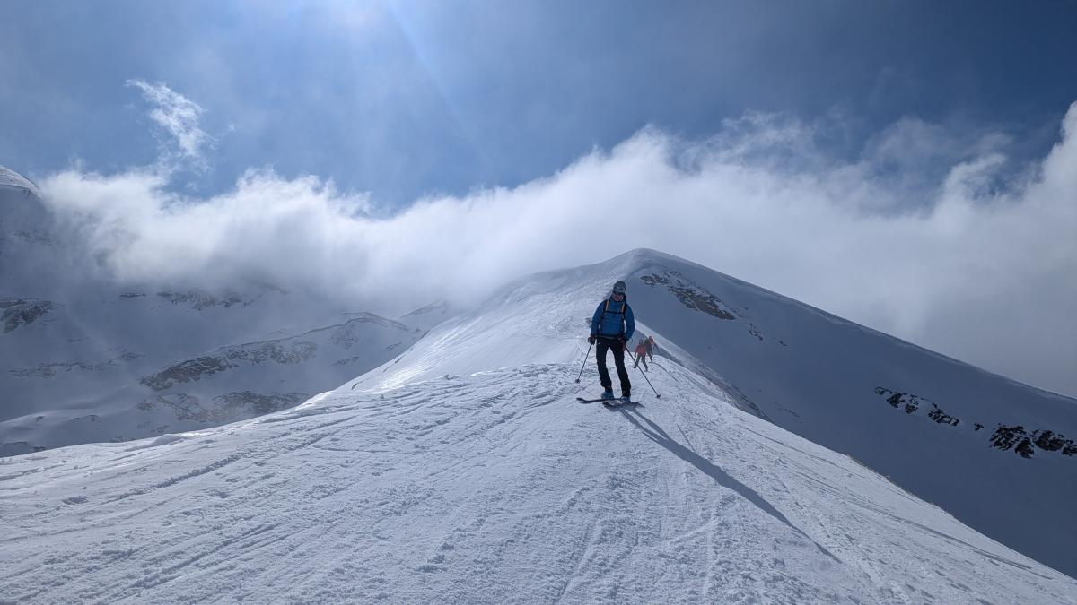 Nous étions parti pour la pointe d'Areu mais trop tard pour les impératifs du jour. Il y a pas mal de replats et de courtes descentes en peaux. Nous pensions gagner un peu de temps en prenant le téléski qui sur la carte fait gagner presque 300m de D+, mais en réalité nous avons gagner seulement 100m de D+. Belles arêtes le long du parcours mais c'est quand même un peu trop plat.