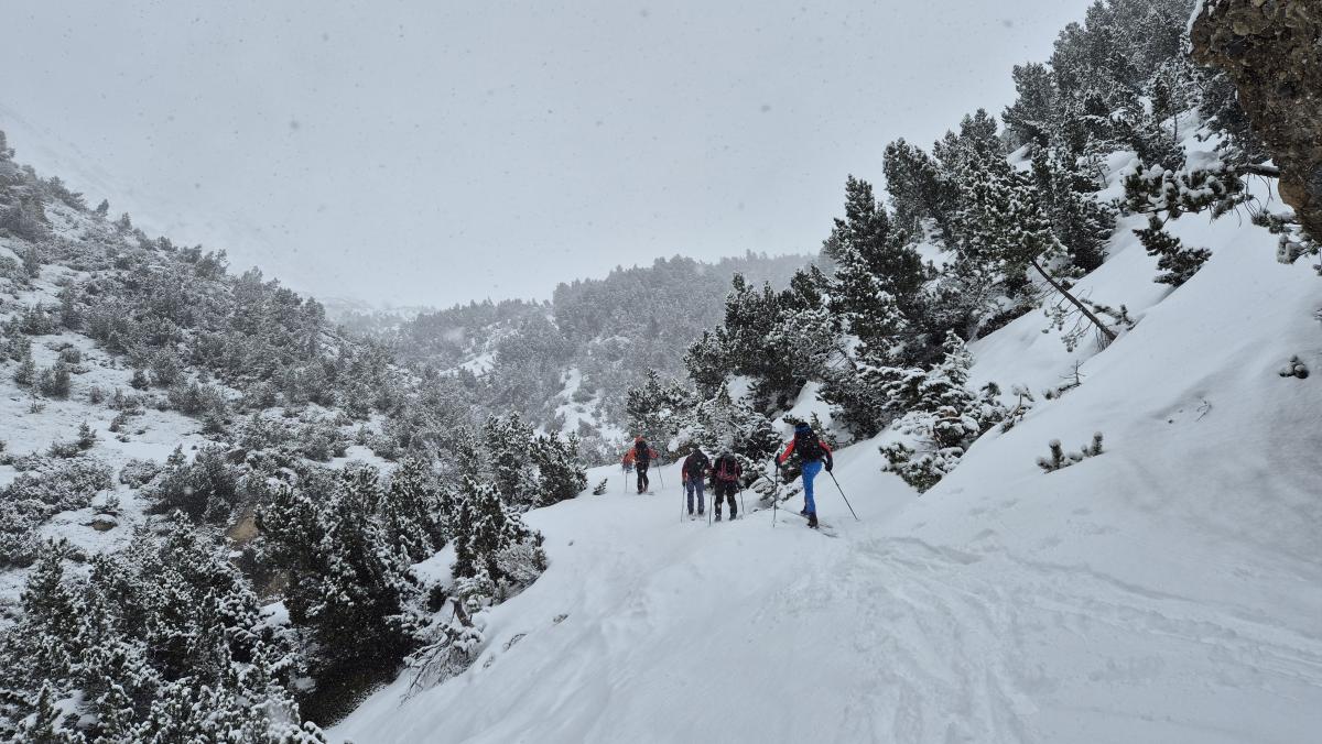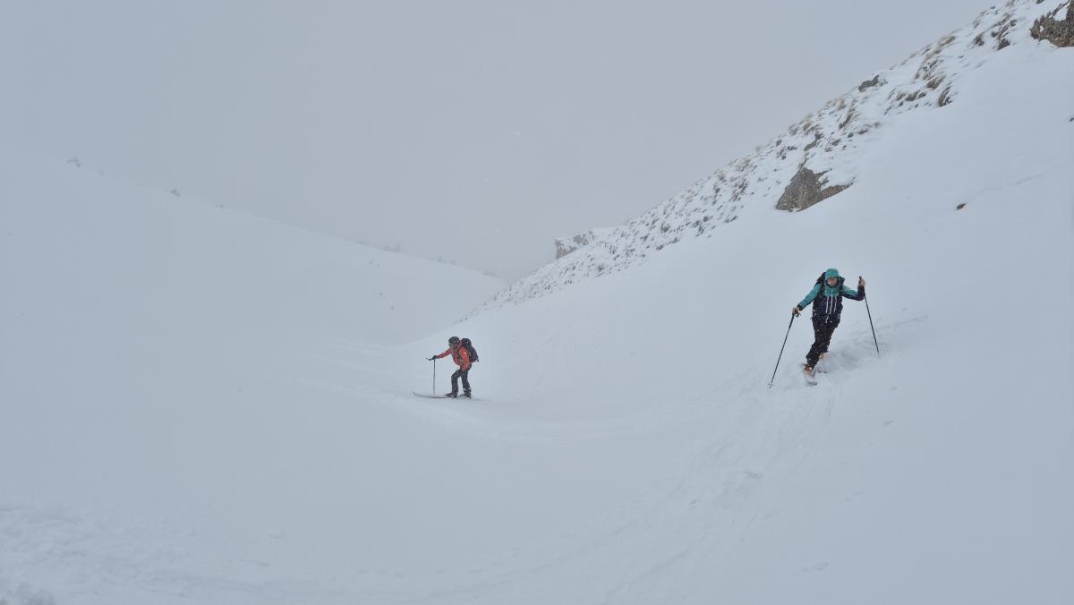 partis pour un aller retour dans la combe, le manque de neige nous incite à changer nos plan et à sortir par le haut pour rejoindre le domaine de Termignon.