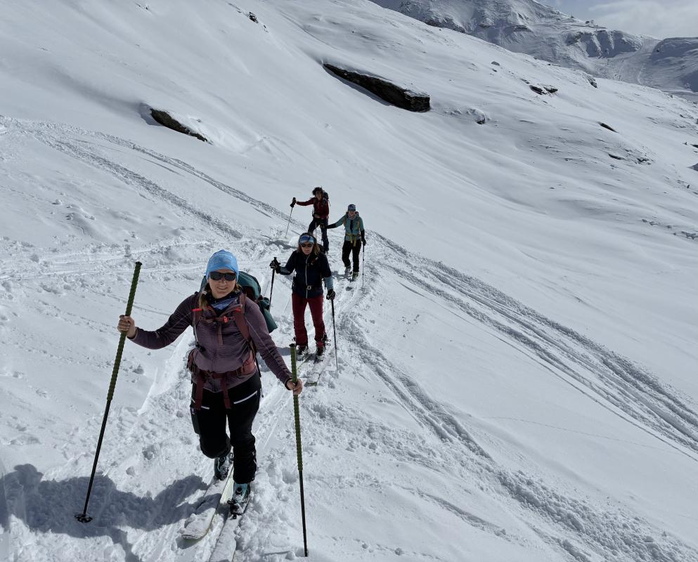 Suite à la soirée d'échanges sur la montagne au féminin, une action possible pour inciter les femmes à prendre plus souvent le lead était la proposition de sorties en non mixité choisie. Ce rassemblement hivernal était l'occasion de mettre en application et donc de proposer, parmi les multiples sorties organisées, une sortie réservée aux femmes.