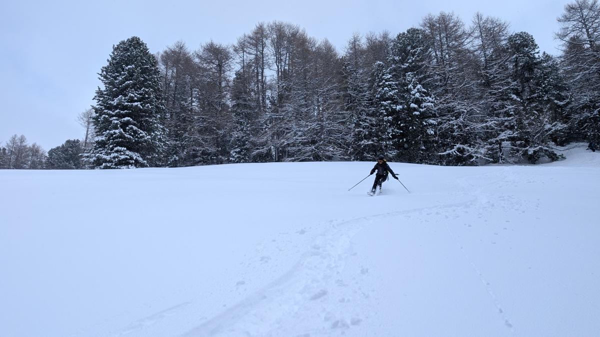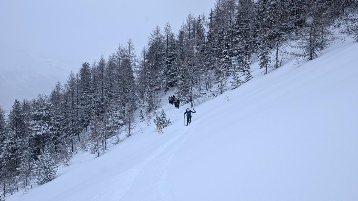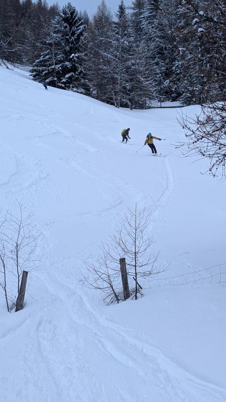 La descente dans une poudreuse épaisse et froide nous a tous donné le sourire et la forêt jusqu'à longe Clôte fut un régal!