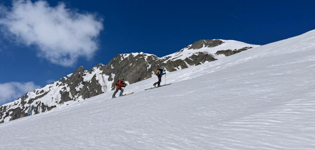 Soleil et bon regel. Neige transfo. Nombreuses reptations sur tout le flan est des Rochers Motas.
