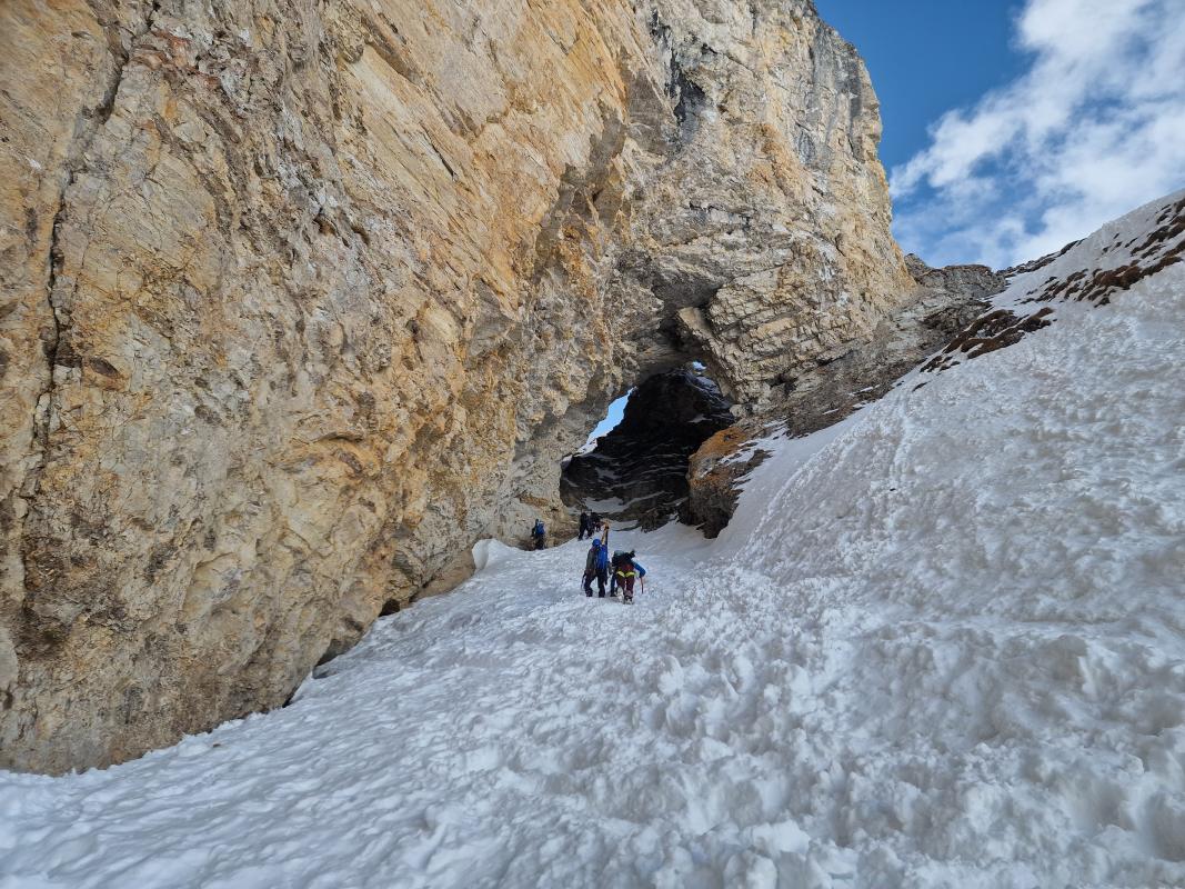 Couvert le matin pour laisser places aux éclaircis une fois arrivés au niveau de la Traversée Héroïque. Ensuite ça a alterné entre ciel bleu et des passages nuageux toute la journée. Température légèrement au-dessus de 0° au parking, sans vent. Regel modeste mais assez pour pouvoir monter sans problèmes. La neige bien trafolée par les nombreux passages des skieurs, transformée et parfois lourde en dessous de 2000m et assez légère mais des fois cartonnée par le vent au dessus. La Traversée Héroïque était en bonne conditions, pareil pour la traversée délicate au niveau de la Tête de Chau ou on n'a même pas sorti les couteaux. Le manteau neigeux est bien stable ce jour-là.