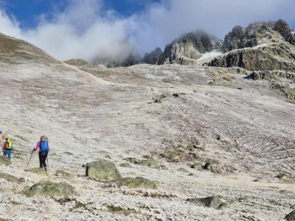 Beau panorama sur les Aiguilles d'Arves quand on se retourne.