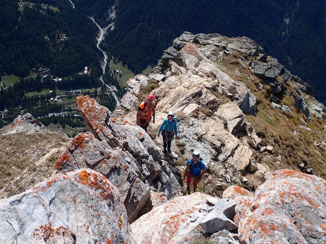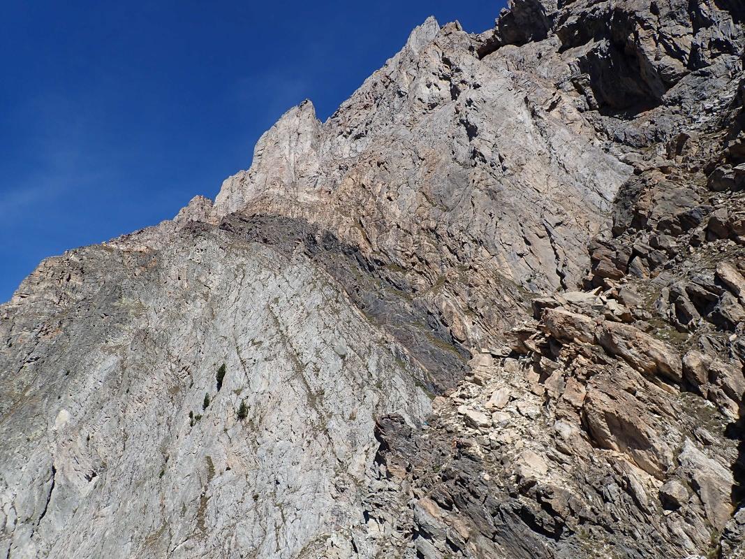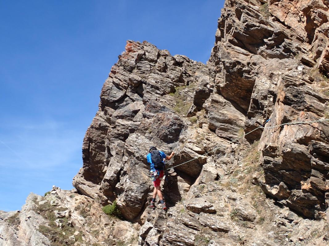 Traversée horizontale de la falaise sous la Pointe de Bellecombe en suivant les vires et montée au sommet tout au bout.