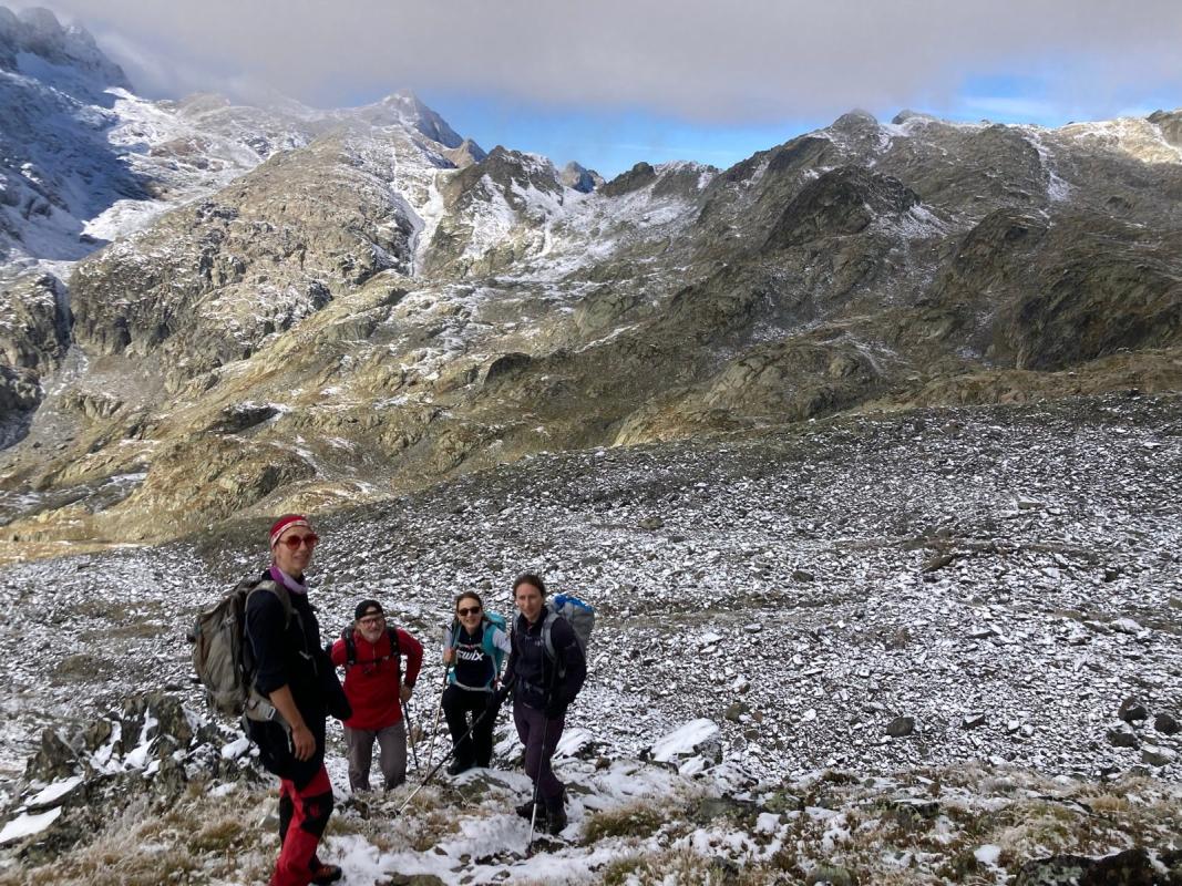 Belle boucle dans un paysage minéral et sauvage. Croisé plus de bouquetins que de randonneurs. On a bien pu admirer la face nord plâtrée de neige des Aiguilles de l'Argentière.