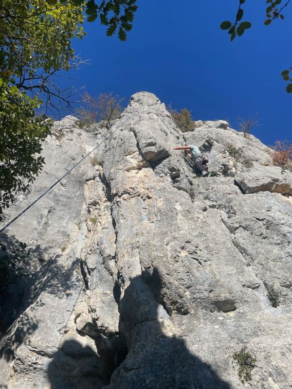 Après un rapide tour à Festival qui était bien occupé par des cordées, nous bifurquons vers Dalarhum et les voies équipées par le GEMSA (sous la supervision de R. Gendey). L'occasion de faire ou refaire: GRhum, Honneur aux Dames (bien bloc), La route du rhum (très très joli).