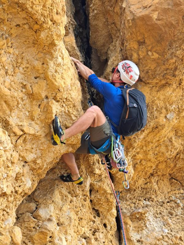 Après des embouteillages au rappel, deux cordées ont pu attaquer la voie où le premier pas mets dedans directement, L2 et L3 plus tranquille et finir la L4 en devers