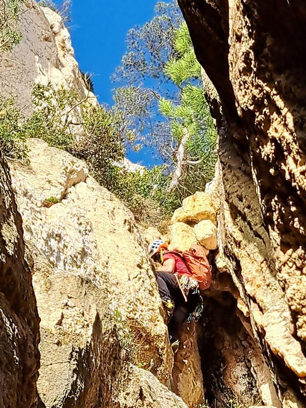 Top ambiance. 4 rappels au dessus de la mer et départ L1 à 10m au dessus de la Méditerranée.
