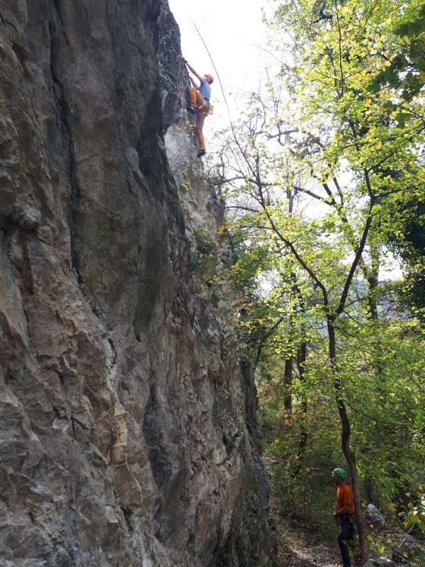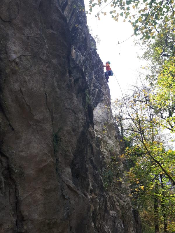 il s'agit des secteurs à gauche du Jardin de Ville appelés Jardin de la Dalle et Jardin du Fond. Les voies, pas très hautes, du 5c au 6b/c permettent de s'échauffer et de bien grimper et . Les 6b du Jardin du Jardin du fond sont plus difficiles que celles du Jardin de la Dalle. Nous avons eu la visite de Elodie, qui est venue nous dire bonjour et faire plein de photos : Sympa :-)