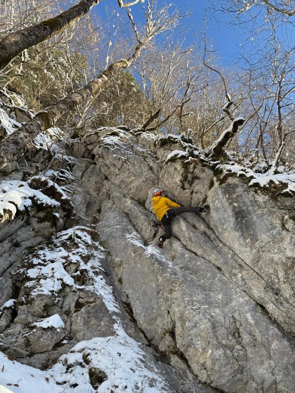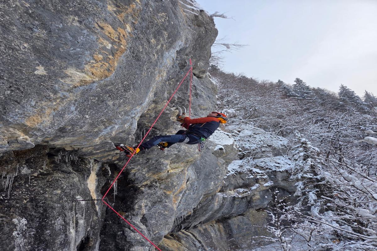 Parfaites : des conditions hivernales idéales pour cette journée de découverte du drytooling, avec le soleil en prime l’après-midi.
