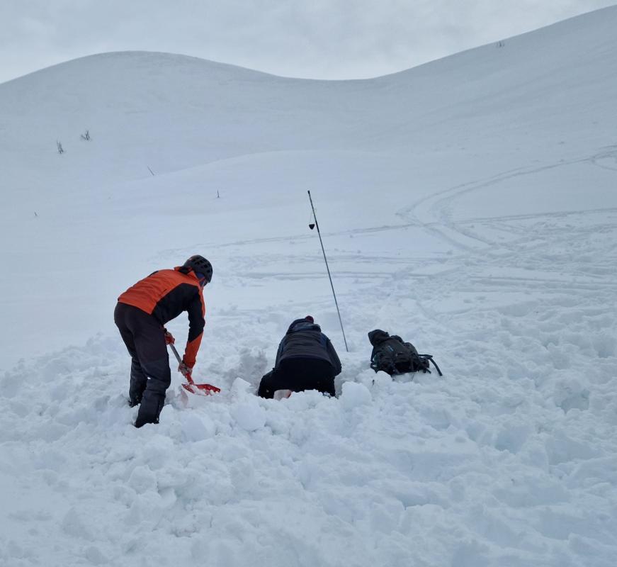 Une équipe au top, pelle, sonde, DVA, sac de croquettes étaient de sortie et ont été bien utiles pour nos recherches parfois sous 1m de neige...