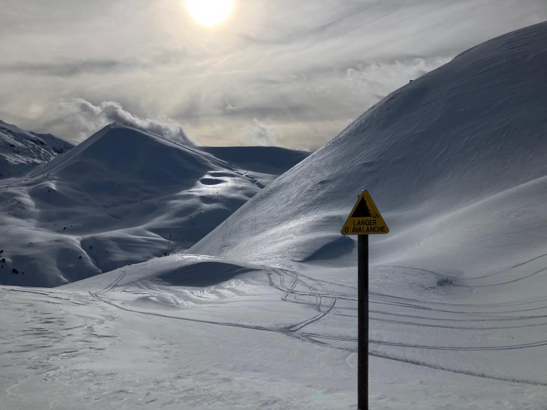 Très bon enneigement pour un début de saison, ciel gris, neige très humide