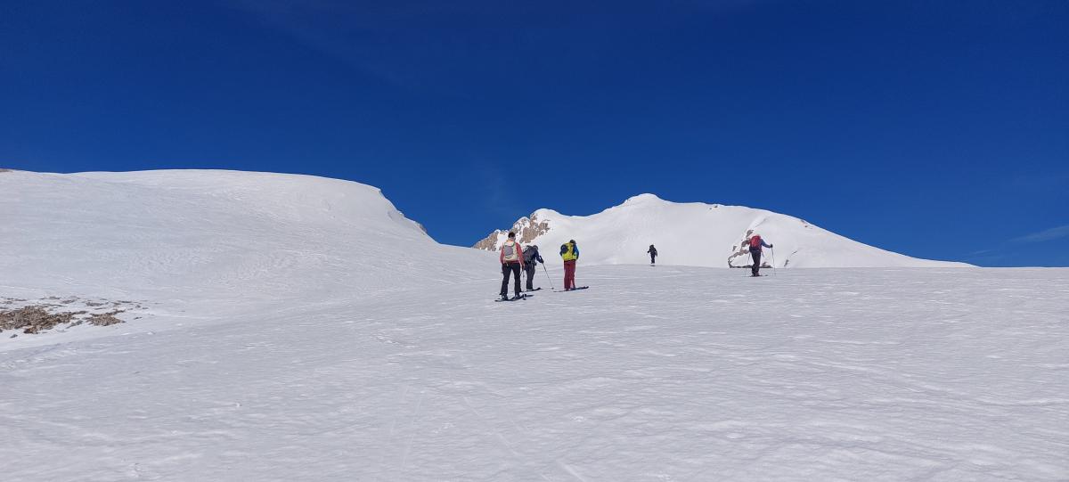 Soleil et chaleur, regel faible mais suffisant pour assurer du bon ski sur la majorité de l’itinéraire . Ski à la voiture.