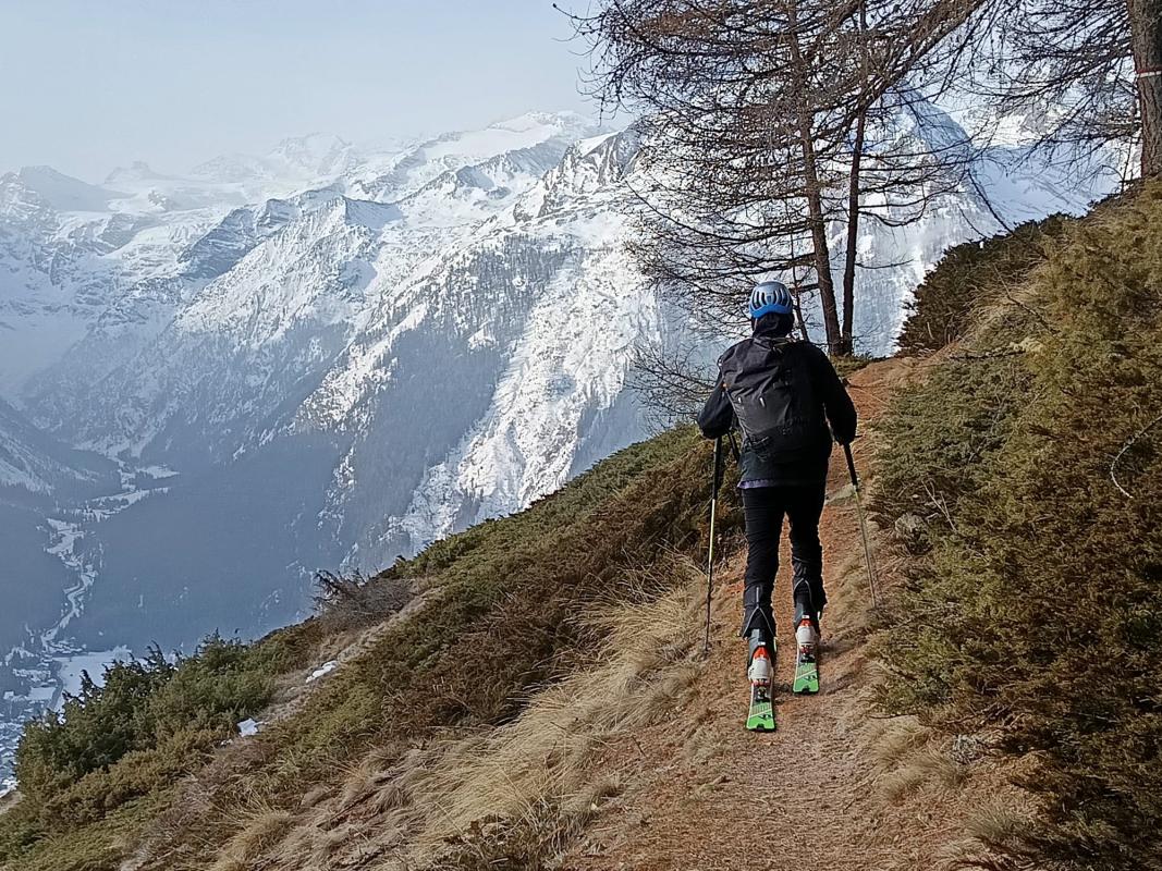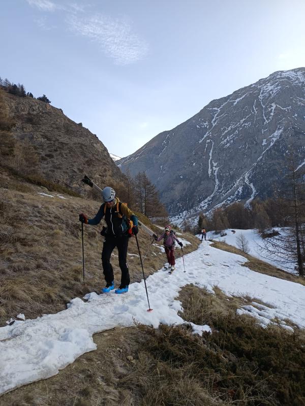 L'idée était attrayante ! Un départ à 1800m, 1200m de D+ et une orientation sud. Que nenni ! La face est sèche et visiblement l'enneigement autour de Cogne est bien faible. Nous sommes monté jusqu'à la sortie de la forêt de mélèzes (2200m) avant de redescendre. Le coin est beau mais demande un très bon enneigement. Nous reviendrons.