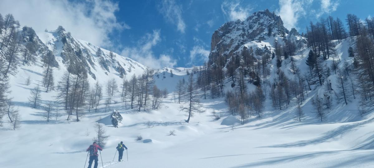 Partant directement du parking de Chialvetta, on remonte dans la forêt, en direction de la Grange Ussiera 1813 m. Ensuite par un cheminement varié entre de petits thalwegs, on laisse à notre gauche le Monte Ciabert et on rejoint, par des pentes raides, le col Solegio bue puis le sommet du même nom 2400 m.