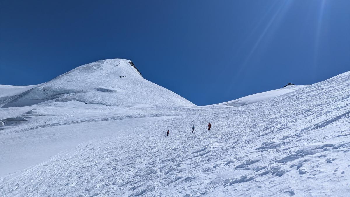 à 4028m. Très belle journée, on repère le sommet suivant pour le