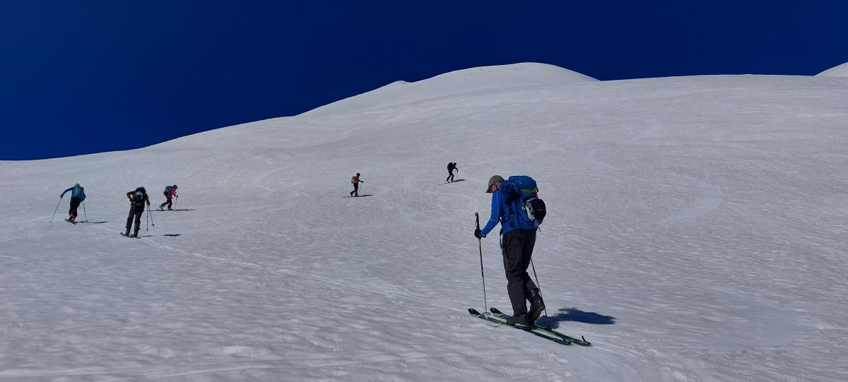 Tous les ingrédients étaient réunis pour une bonne sortie de printemps : un portage limité, une montée efficace aux Aiguillettes avec les couteaux, une première descente versant Est sur du velours, un pique-nique panoramique au sommet des Aiguillettes, une deuxième descente versant NW jusqu’à 2000 et enfin après une dernière montée sur Cote Mouton une belle descente versant W sous Cote Belle sur une neige revenue à point. Une bonne journée en montagne 🤩